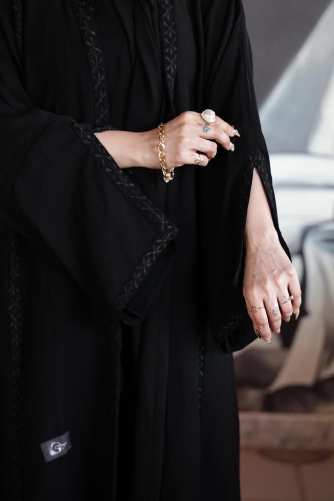 عباية سوداء مطرزة بتطريز أسود أنيق تضيف لمسة فاخرة وراقية لإطلالتك. مصنوعة من قماش كريب ملكي مريح وخفيف، بتصميم عملي يناسب المشاوير اليومية والمناسبات الخاصة. التطريز الناعم يميزها بأسلوب عصري أنثوي يعكس ذوقك الرفيع.